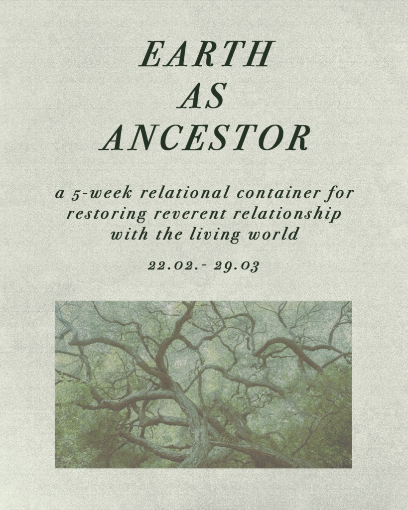 EARTH AS ANCESTOR is a 5-week relational container that explores how we can live in deeper relationship with the earth as our ancestor in this moment in time — not symbolically, but relationally.